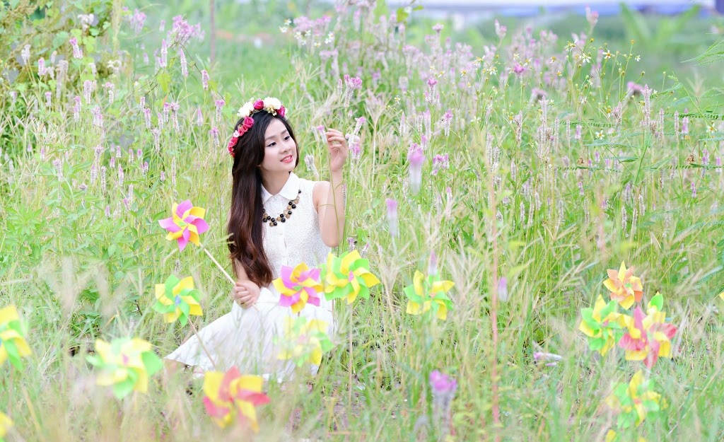 Cùng ngắm hình nền cô gái xinh đẹp chơi chong chóng trên đồng cỏ. Hình nền gái xinh Việt Nam tạo dáng giữa phong cảnh thiên nhiên tươi đẹp.